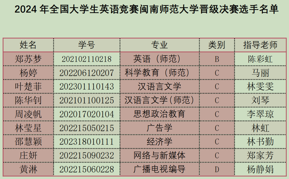 本次竞赛初赛成绩于初赛结束后两周内公布,参赛学生可以登录官网查询。根据初赛成绩和名次评选出进入决赛的选手以及本届大赛二等奖和三等奖获奖者。以下为全国大学生英语竞赛韩国三级片