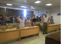 召开全院教师党员大会,学院党委书记吴晓峰同志带领全体教工党员面对鲜红的党旗,举起右拳,庄严宣誓,许下对党忠诚、永不叛党的坚定承诺,将党员的荣耀、责任和使命牢牢铭记在心,用实际行动彰显自己的铮铮誓言。