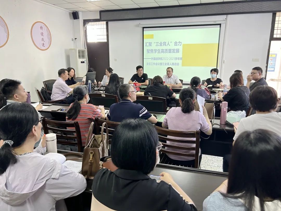 于综合楼中区506会议室召开2022-2023学年班主任工作会议暨三全育人推进会。学院党委书记吴晓峰、党委副书记朱兆军、全体班主任及辅导员参加会议,朱兆军副书记主持会议。