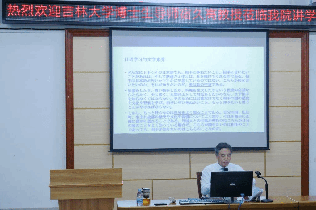 博士生导师宿久高教授在逸梯二开展题为“日语学习与文学素养”的讲座,讲座由日语系主任庄苹副教授主持,日语系师生到场参加。