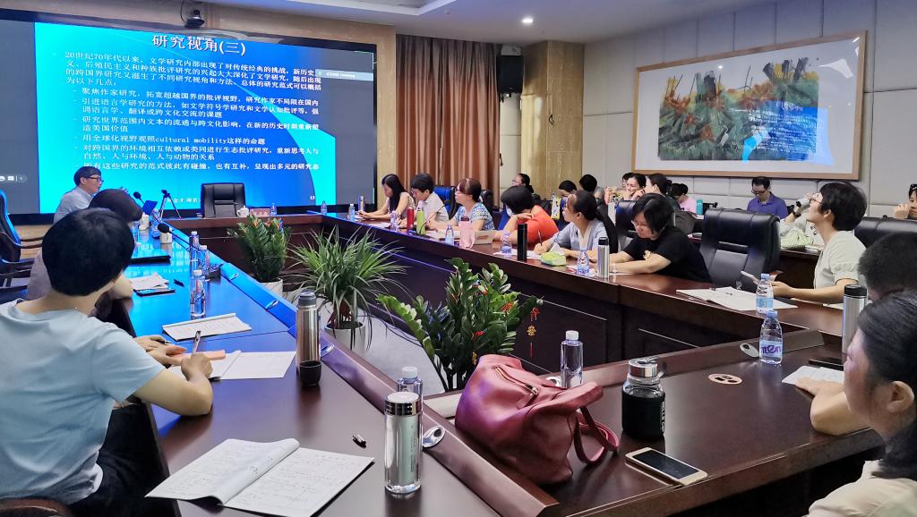 5月28日上午,科技楼1607会议室里,南京大学杨金才教授和北京航空航天大学田俊武教授分别做了题为“学术论文选题和写作的基本路径”和“谈莎士比亚在国内外的功利主义运用及对中国学者项目申请、论文发表的启示”的讲座,外院教师和学生参加讲座。
