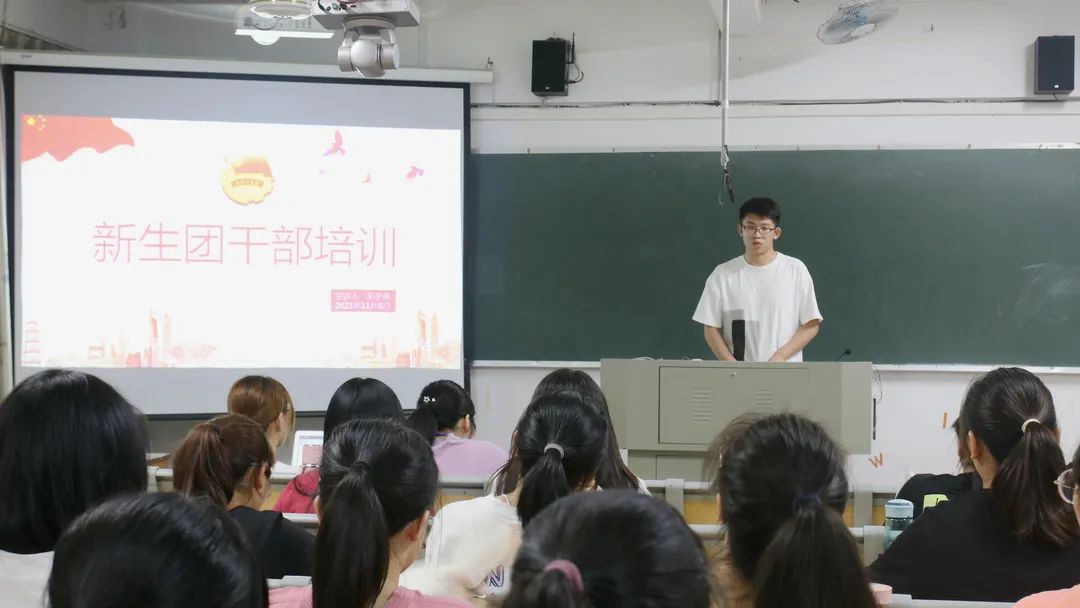 分团校学生骨干培训班第三讲“新生团干培训”在综合楼西区101开讲。院学生团委副书记周冬奇及院学生团委副书记助理林婧娴对我院21级学生干部进行培训。