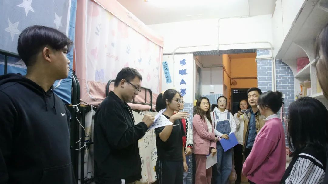 11月11日晚7时30分,学院党委副书记朱兆军老师,团委副书记张啸啸老师,辅导员梁燕辉、陈安迪、林珠梅以及陈雅鹏老师应邀走访宿舍,对入围决赛的宿舍进行评分。评委老师们逐一走进参赛宿舍,与同学们亲切交流,被同学们的热情打动。老师们深入了解装扮理念并进行点评打分。与此同时,评委老师们对不同风格的宿舍给予肯定,并且鼓励大家发展不同的宿舍特点和个性。评委老师们在感叹外院学子们的动手能力和创造能力的同时,也强调了装扮宿舍时的安全问题以及宿舍物件摆放的问题。老师们鼓励同学们要积极构建文明和谐的宿舍文化,营造“儒雅之风、团结之意、文明之韵、温馨之味”的宿舍文化氛围。