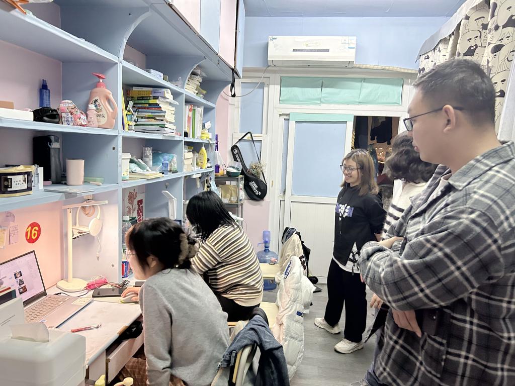 党委副书记朱兆军、团委副书记张啸啸和全体辅导员老师们深入学生宿舍,与外院学生们“面对面”谈心,送去亲切的问候与关怀。