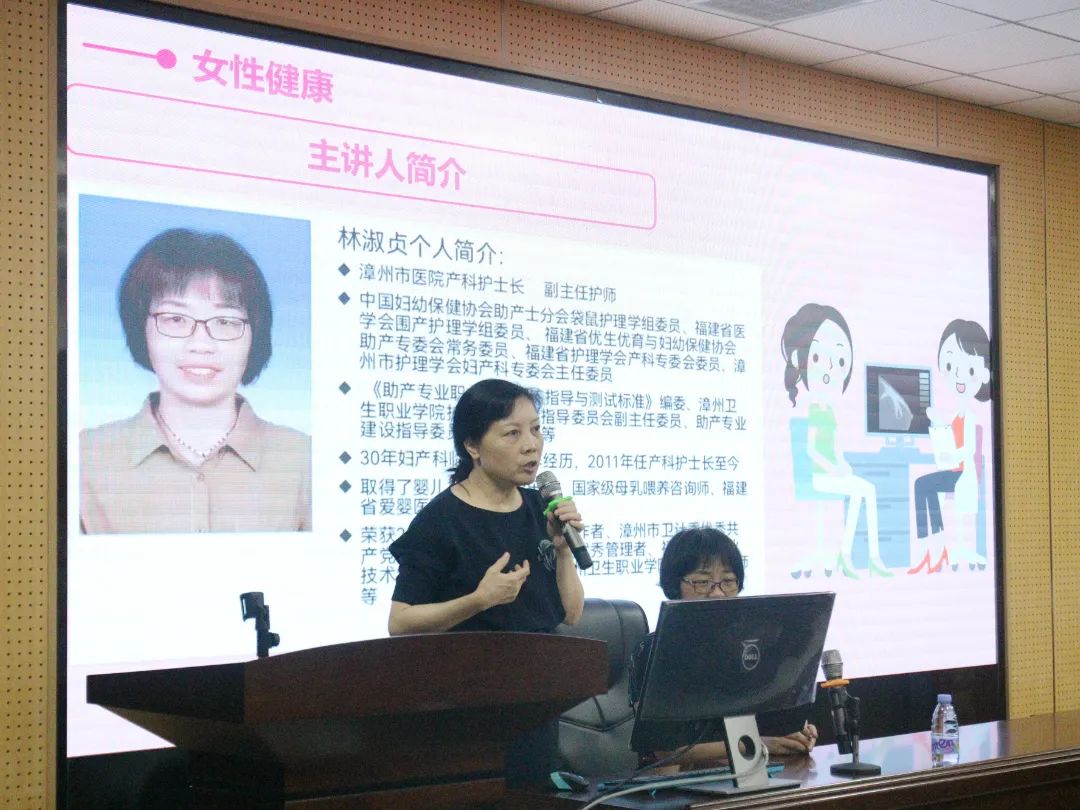 为深入开展学习贯彻习近平新时代中国特色社会主义思想主题教育,牢固树立以人民为中心的发展理念,聚焦解决师生在生活方面的突出问题,落实立德树人的根本任务,推动育人工作取得新突破新成效,5月10日晚,我院邀请漳州市医院林淑贞副主任医师为师生讲授女性健康知识。讲座由吴玉玲院长主持,我院师生参与本次讲座。