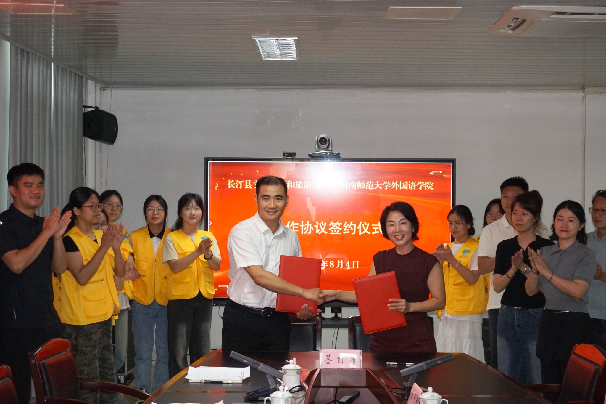 与长汀县文化体育和旅游局签订战略合作框架协议。通过此次签约实现高校与地方双向赋能,搭建起资源共享、优势互补的合作平台。彰显高校主动融入地方发展、以智力服务赋能区域振兴的责任担当。在文旅融合创新的实践中,以外语服务精准赋能地方产业升级,书写校地携手共进、互利共赢的新篇章,为推动地方文化传承与经济社会发展贡献青春力量。