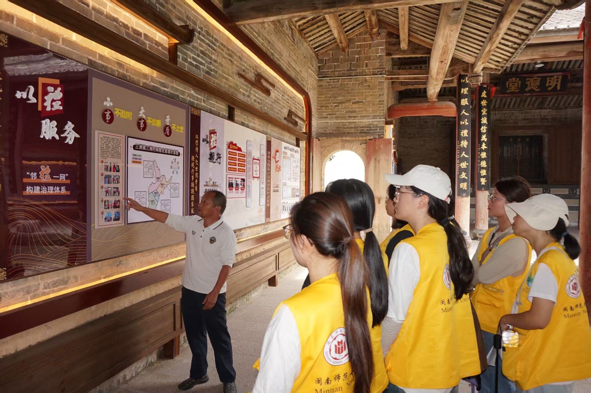 实践队循着历史轨迹,深入长汀文化场域。走进长汀县博物馆,在展品中感受红色基因与传统文化交融,筑牢文化自信根基;探访长汀古城八喜馆、木工馆,在民俗文化与传统技艺中感受前人的智慧。置身三洲戴氏家庙,感悟家风家训与社会主义核心价值观的契合,凝聚社区共识、涵养文明乡风。在竹编工坊内进行非遗体验,向非遗传承人学艺,看传统手工艺借乡村振兴东风,在创新传承中焕发新生,为文旅融合添彩 。