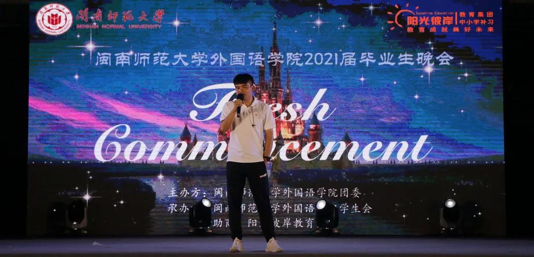 歌曲《若能成为光》化作微光,点亮了青葱岁月里身处黑暗迷茫之中的每一个的时刻;由17级同学带来的诗朗诵《闽师回忆录》刻画着四年难忘的同窗故事。