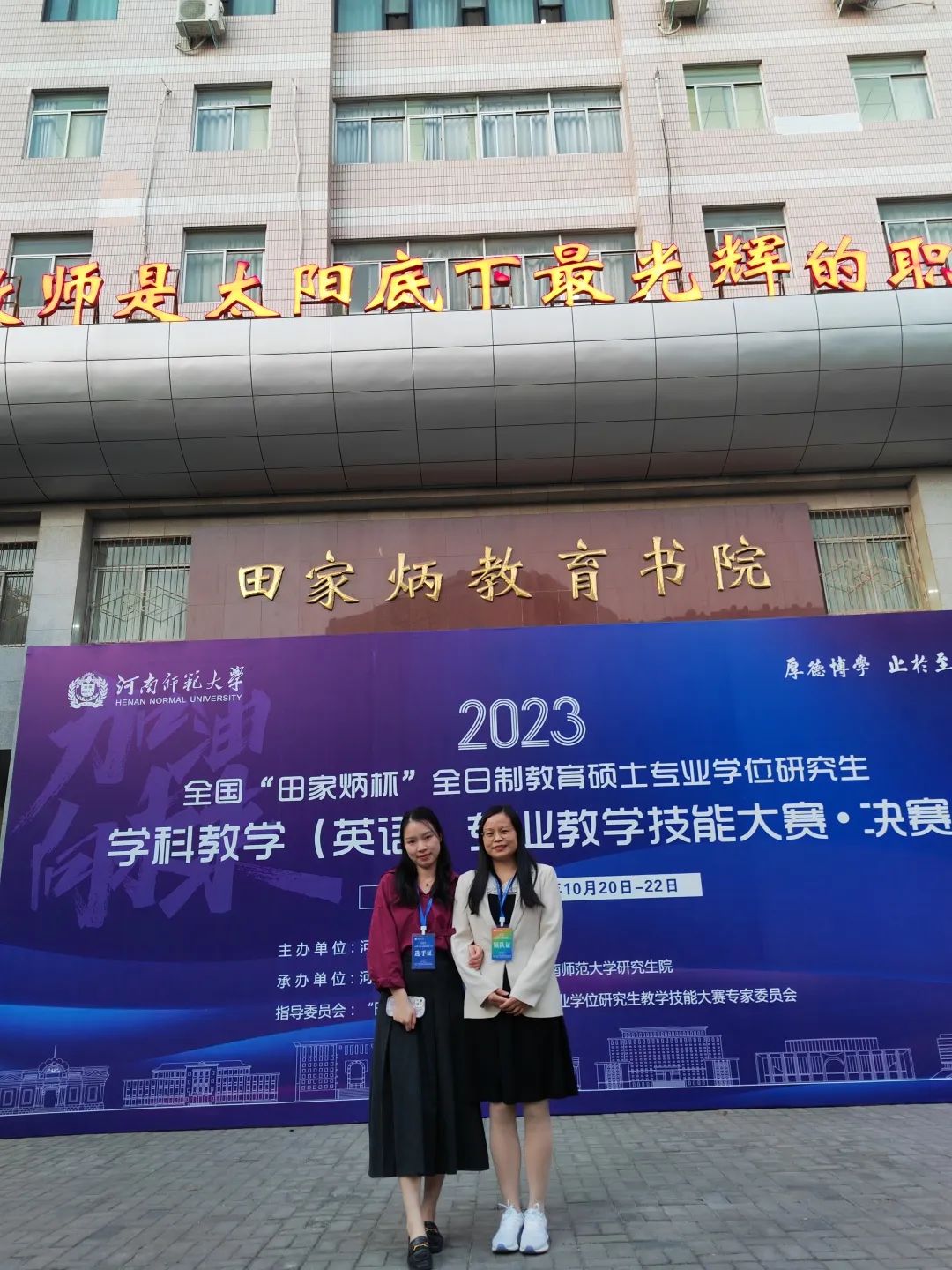 10月20—22日,2023年全国“田家炳杯”全日制教育硕士专业学位研究生学科教学(英语)专业教学技能大赛决赛在河南师范大学顺利举行。2022级学科教学(英语)研究生林建、郑若兰、林秀媚和曲颖霞同学在吴玉玲老师和陈彩虹老师的带领和指导下参加本次大赛并获得佳绩。