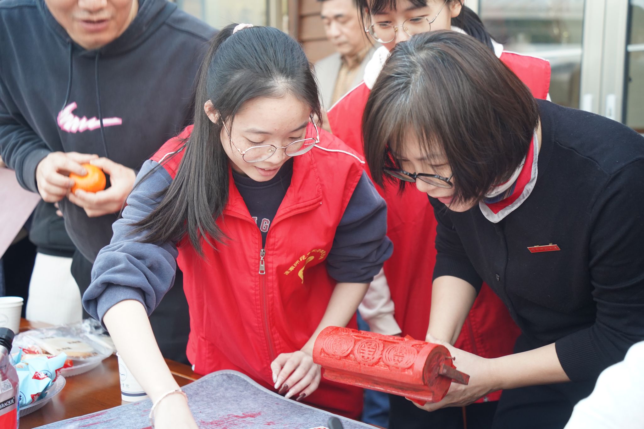 最后,全院教职工参加了素质拓展团建及非遗迎新春文化活动,用团队游戏、“写春联”、“非遗拓印”等形式,展现团结协作、学融中外的外院精神,并表达对新年的美好祝愿。