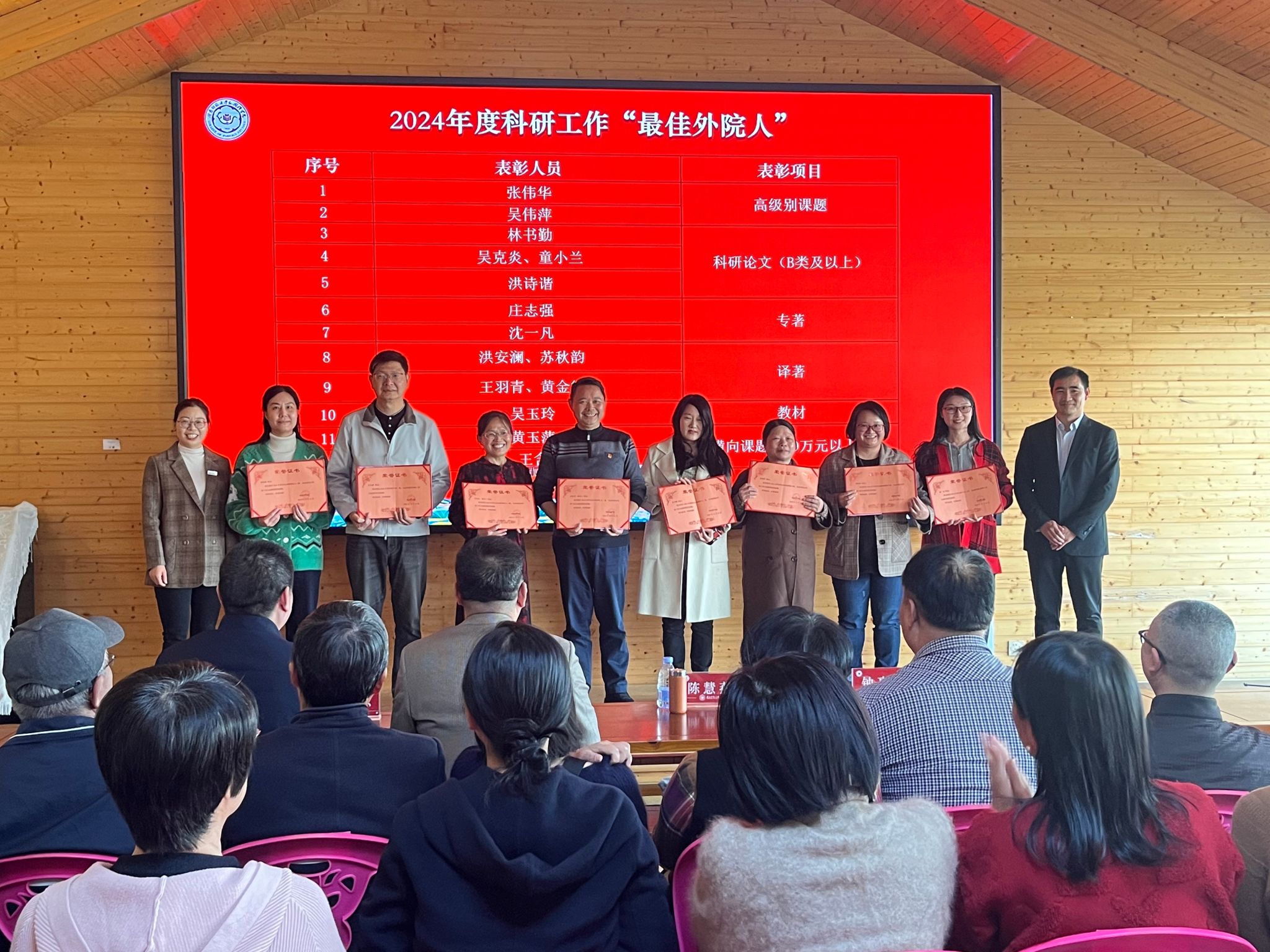 随后举行了为人民的教育事业服务三十周年颁奖仪式、2024年“最佳外院人”表彰仪式和退休教职工荣休仪式。学院充分肯定各位老师在各个领域做出的突出贡献,号召全体教职员工要向他们学习,做学生为学、为师、为人的“大先生”。
