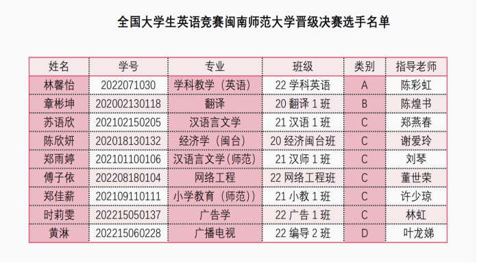 根据初赛成绩和名次评选出进入决赛的选手以及本届大赛二等奖和三等奖获奖者。以下为全国大学生英语竞赛韩国三级片