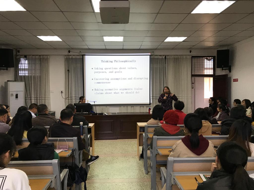 英语师范专业教师、研究生、本科生等开展了一场名为《美国前沿教育教学理论》的讲座。