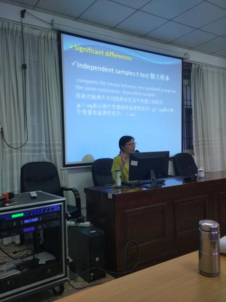 师生作题为“实验设计及其论证”的讲座,讲座由卢水林老师主持,外语学院全体老师和部分学生参加。