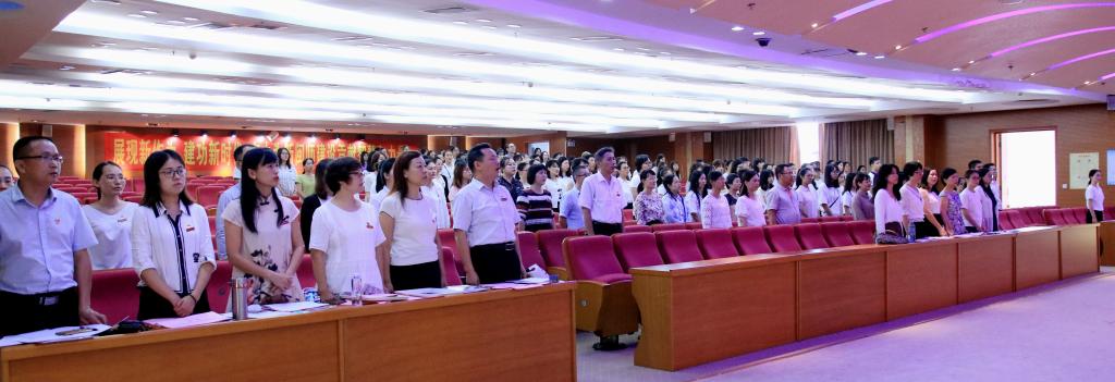 逸夫图书馆五楼报告厅庄严肃穆,气氛威严。大会在庄严的国歌声中拉开帷幕。