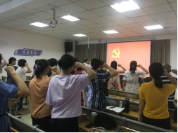 召开全院教师党员大会,学院党委书记吴晓峰同志带领全体教工党员面对鲜红的党旗,举起右拳,庄严宣誓,许下对党忠诚、永不叛党的坚定承诺,将党员的荣耀、责任和使命牢牢铭记在心,用实际行动彰显自己的铮铮誓言。
