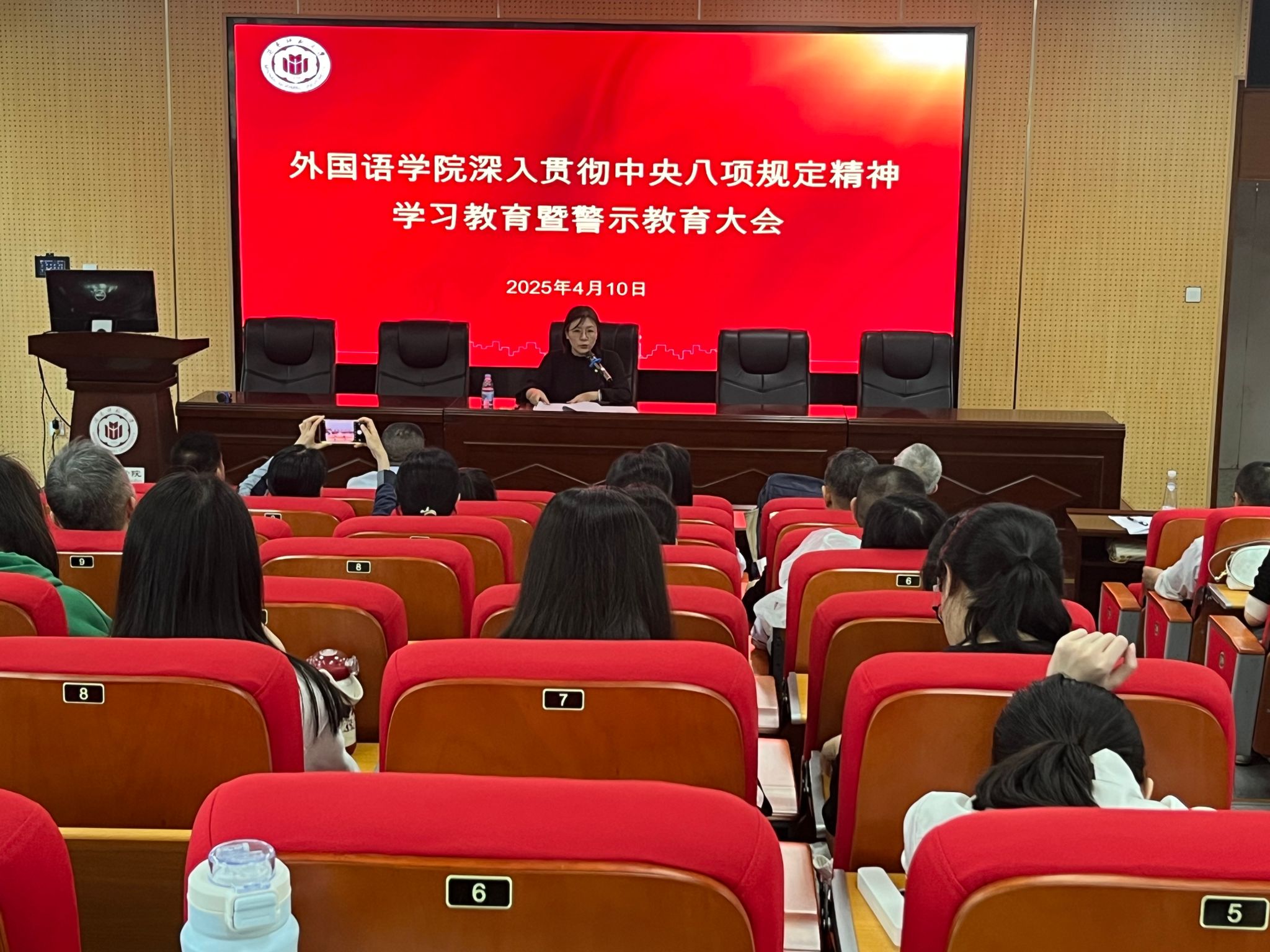 在逸夫楼召开深入贯彻中央八项规定精神学习教育警示教育会,学院全体师生党员参会,会议由学院党委书记陈慧燕主持。
