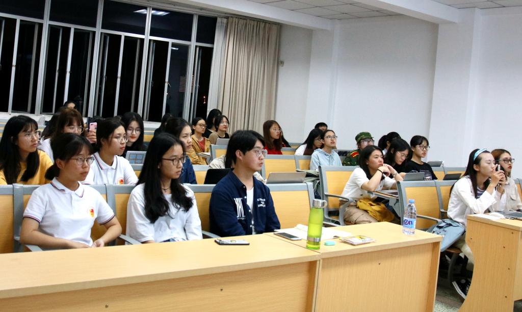 第七期分团校学生骨干培训班第三讲“新生团干部培训”在综中504开讲。院学生团委副书记程泽强、康淑婷向18级团干部进行培训。
