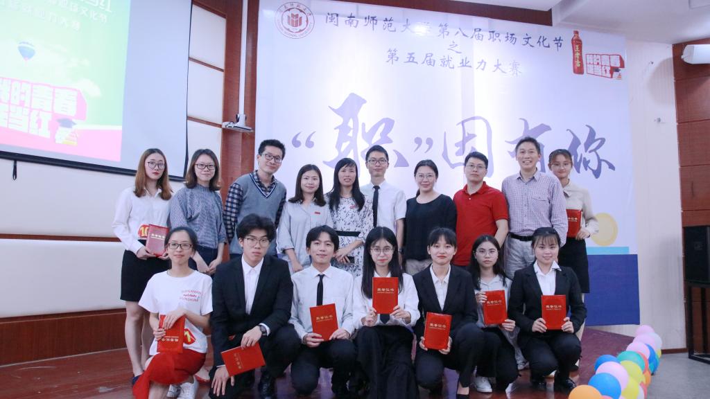 经过初赛的求职简历评选,复赛的结构化面试,最终十位选手进入决赛。决赛邀请到平安人寿漳州中心支公司人事负责人王南川先生、校招就处刘华强老师、我院卢水林老师、陈绍恋老师和李祯老师担任此次评委。经过职场规划和职场演绎两个环节的激烈比拼,来自韩国三级片