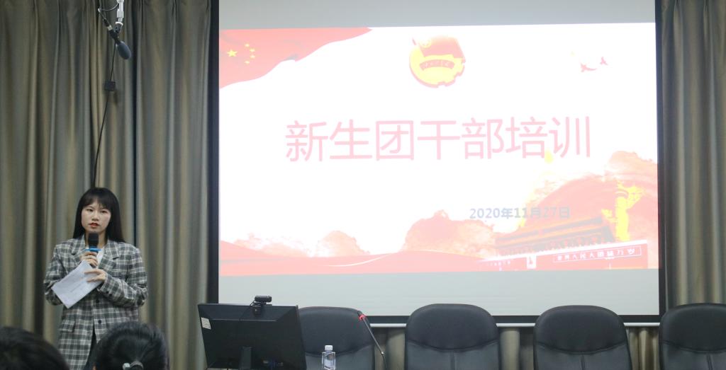分团校学生骨干培训班第三讲“新生团干部培训”在综合楼中区504会议室开讲。院学生团委副书记兰舒宁同学和院学生团委副书记助理蒋金凤同学对我院20级学生干部进行培训。