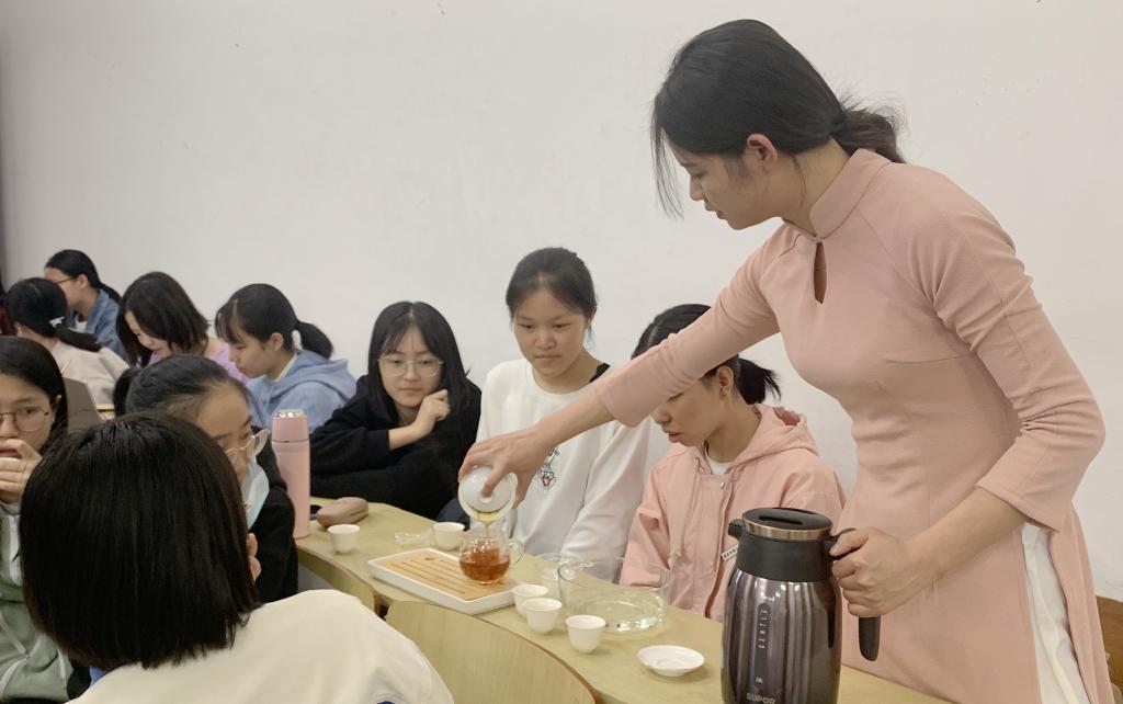 接着,陈毅祯老师对茶的分类和功效等进行了细致的介绍,对泡茶以及喝茶的礼仪做了详细的讲解。随后,她讲解并示范了泡茶的基本流程。大家兴趣满满、聚精会神,认真学习了泡茶的各项要点。