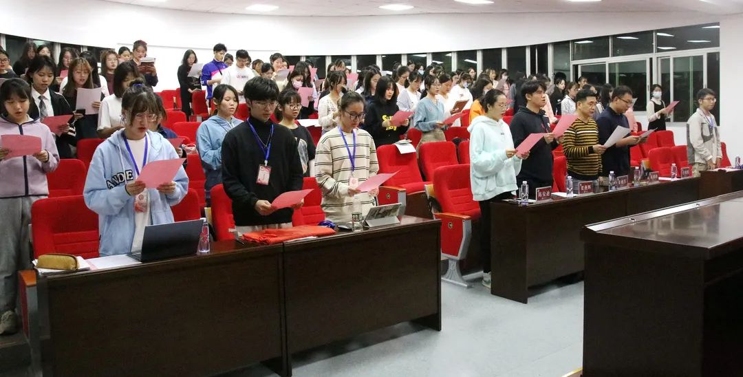 首先,会上举行了严肃的新团员入团仪式。全体新团员佩戴团徽进行庄严宣誓,希望他们能够不忘初心,牢记入团使命。