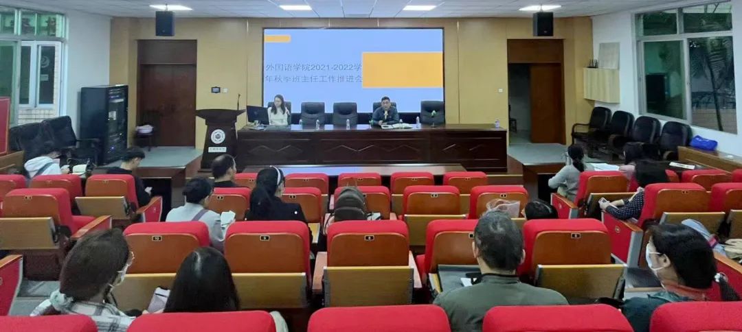 2021-2022学年的班主任工作推进会在逸夫梯教二举行,院党委副书记朱兆军,团委副书记张啸啸,全体辅导员,20、21级全体班主任参与了本次推进会。