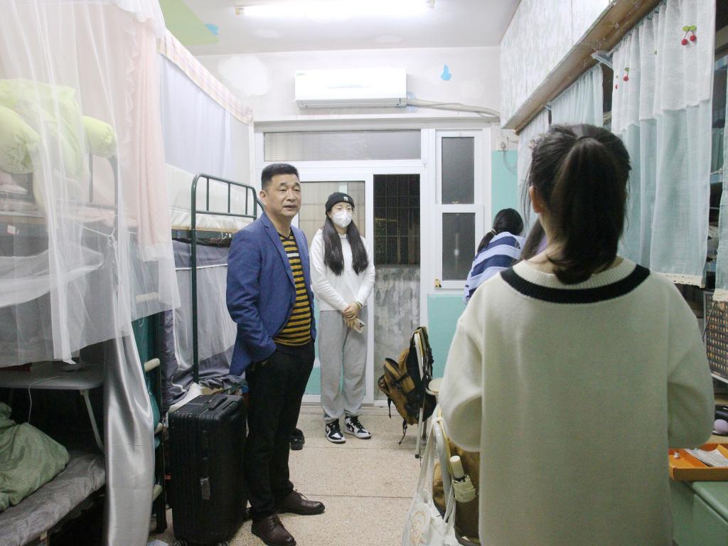 党委副书记朱兆军、团委副书记张啸啸和全体辅导员老师们深入学生宿舍,与外院学生们“面对面”谈心,送去亲切的问候与关怀。