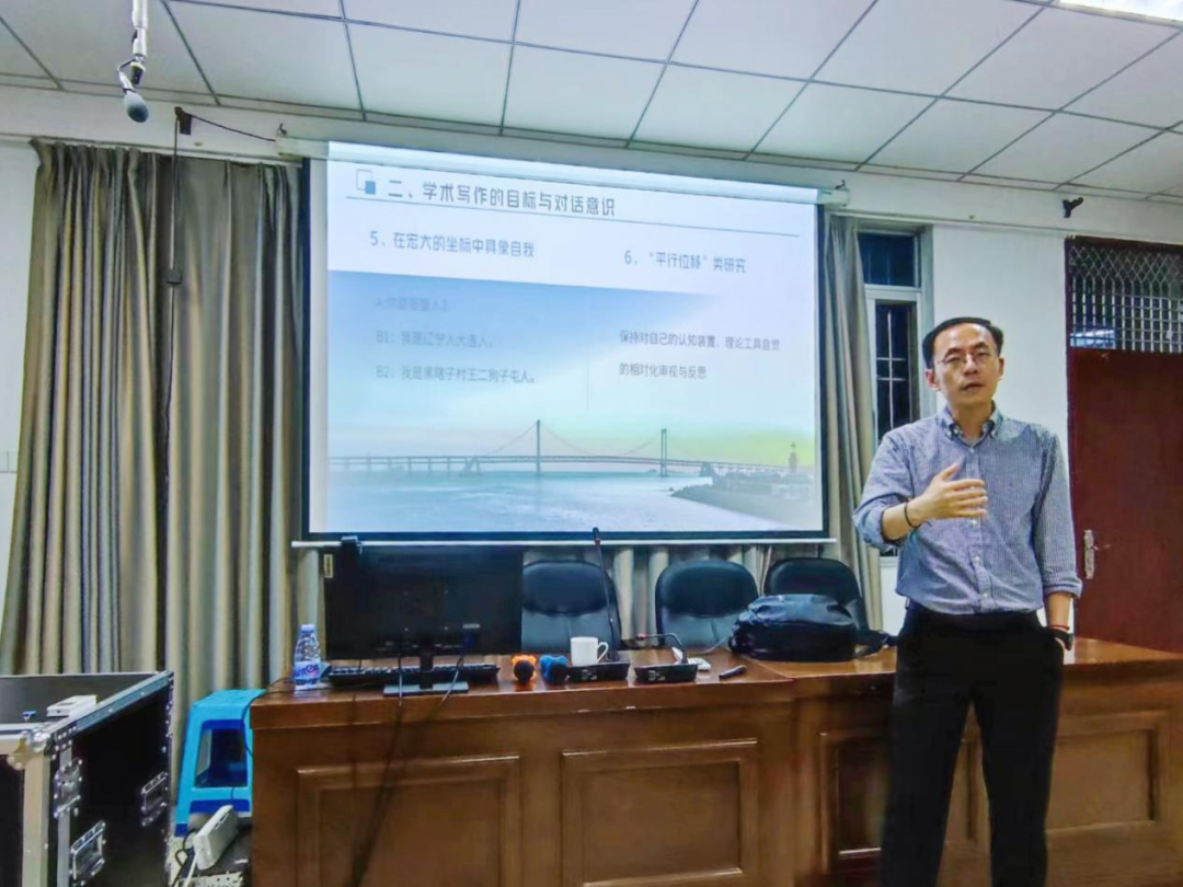 ,作了题为《学术论文写作的预设与展开》的主题演讲。讲座由韩国三级片