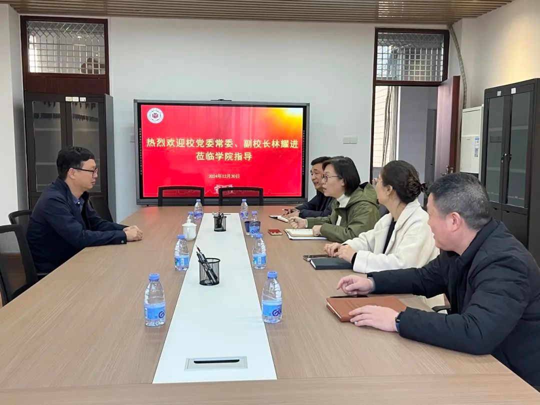 林耀进认真听取汇报后指出,学院要主动把握教育规律与时代发展趋势,把社会需要、市场需求融入学科专业建设中,确保专业建设精准贴合市场,契合行业、企业所需,培养更多适应能力强、匹配度高的应用型人才;要加大外引内培,建强教师队伍,充分调动广大教师尤其是青年教师的积极性,将师资队伍优势转化为教学优势、科研优势;要深耕教师教育,发挥固有优势及特色,同时更要积极拓宽国际视野,寻求新突破,实现“语言+”的教育升级。