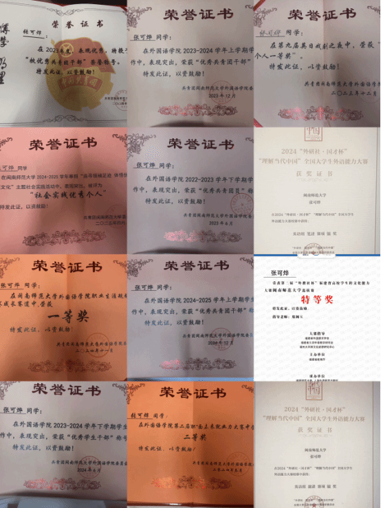 9.2024年12月获评全国大学生英语翻译大赛省级一等奖;