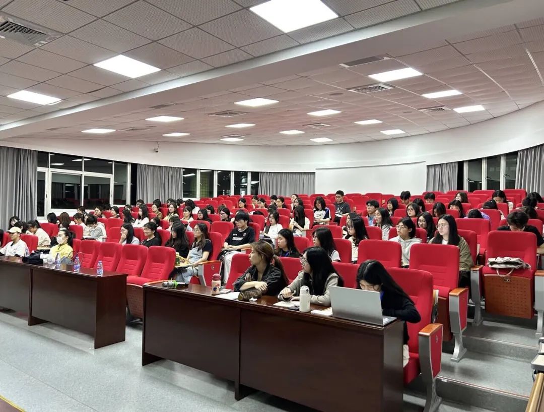 于逸夫楼梯教二开展主题为“山海有归期,追光向未来”的优秀校友讲座,本次讲座邀请我院2004届优秀校友徐宗杰分享自己外贸领域的从业经验以及创业的心得体会。