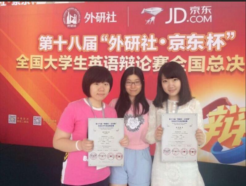 英语演讲与辩论协会的商雨珊,姜悦同学,在张心怡老师的指导下,力压北京大学、中山大学、复旦大学、上海外国语大学、厦门大学等知名学府,最终挺进十六强,荣获全国一等奖。