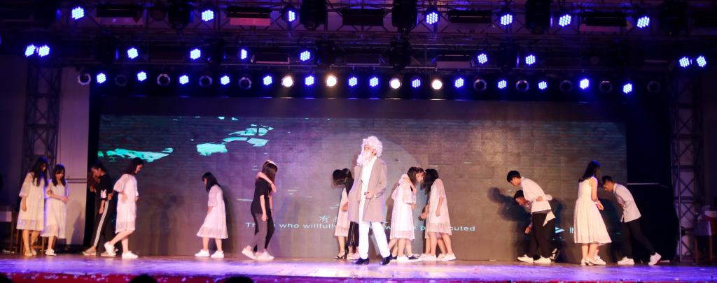本届英日戏剧之夜包括本科英语剧目《浮士德》、原创日语剧目《青之桥》以及研究生英语剧目《仲夏夜之梦》。在《浮士德》中,本科英语系的同学们都全身心投入剧情之中,无论是浮士德和玛格丽特,还是天使和魔鬼,一个个都活灵活现,将理智与情感的交锋表现得淋漓尽致。原创日语剧目《青之桥》由外院师生自编,自导,自演。讲述了在日本长岛长大的平凡少女青只身来到东京求学,意外遇上古灵精怪的幽灵桥并与一对仗义相救的兄妹成为朋友的故事。在这其中,青收获了自信,收获了友谊,逐渐成长。日语系的同学们将平凡的故事演绎得有声有色,每一个角色都惟妙惟肖,将观众带入故事,感受其中的友谊与美好。《仲夏夜之梦》向我们娓娓道来一个有情人终成眷属的爱情故事。原来复杂的人物爱情关系,因为仙王的药水,最终变得美好。研究生们在舞台上收放自如,将人物的情感生动地展现了出来,赢得了现场师生的一致好评。最终,《仲夏夜之梦》获优秀演出奖、《青之桥》获优秀剧目奖。翁润思、钱朝靖、董富鑫、卓凤珠、陈心远、吴亚伟、张新雅和林小雪同学获得了个人表演特等奖,许晴、张欢、杨吉利同学获得一等奖,任浩喆、李荣超、谢紫玲、尤韩、林志华、杨珍、徐玲婷和单怀宇同学获二等奖,高建邦、廖洪同学获三等奖,周静同学获优秀奖。