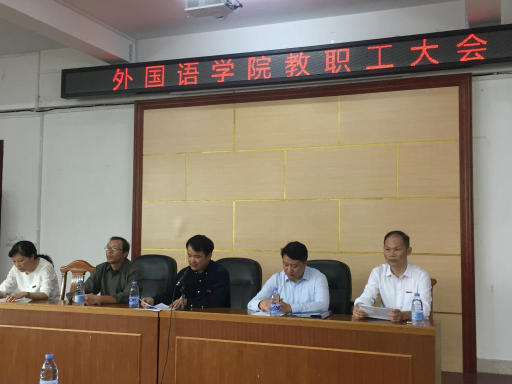 10月19日上午,我院在逸夫楼梯教二召开全院教职工大会宣读我院党委书记的任免决定。副校长张龙海,组织部副部长周霖出席会议,学院领导班子成员及全体教职员工参加会议。会议由学院院长吴玉玲主持。