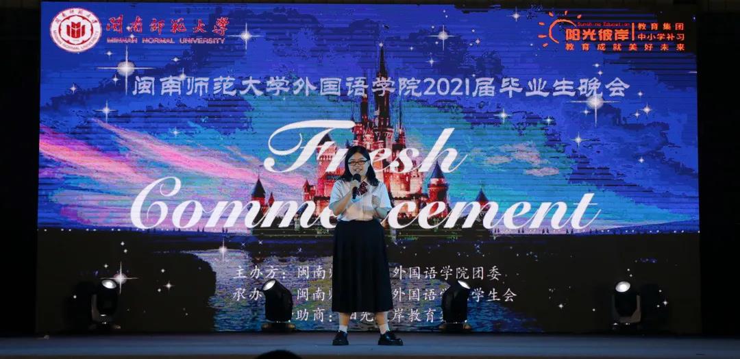 歌曲《若能成为光》化作微光,点亮了青葱岁月里身处黑暗迷茫之中的每一个的时刻;由17级同学带来的诗朗诵《闽师回忆录》刻画着四年难忘的同窗故事。