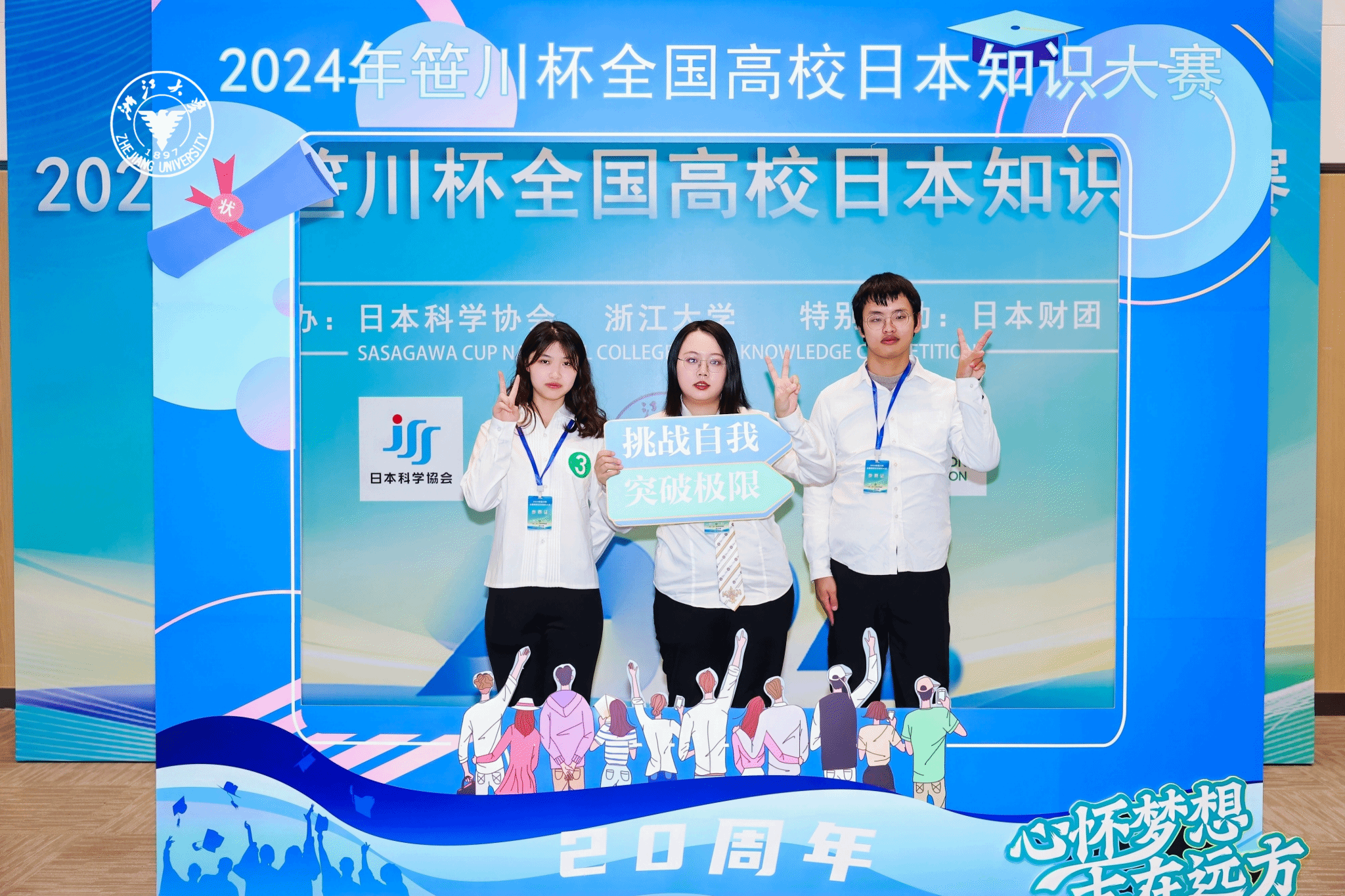 近日,由日本科学协会和浙江大学共同主办的“2024年笹川杯全国高校日本知识大赛”顺利举行。我院蔡灵婧同学荣获“个人奖一等奖”,团队荣获“团体优秀奖”,陈娴老师荣获“杰出指导教师奖”。